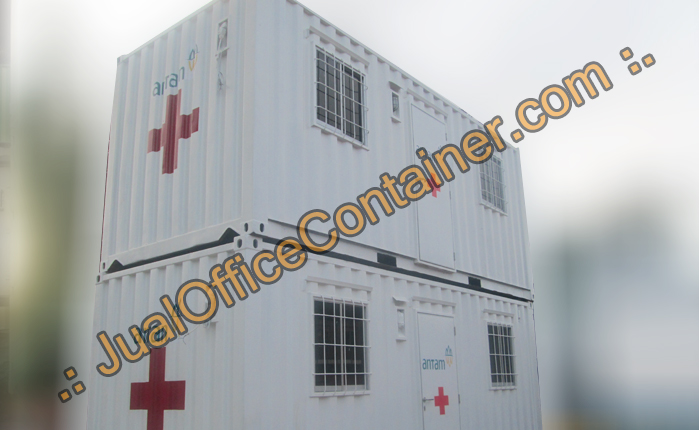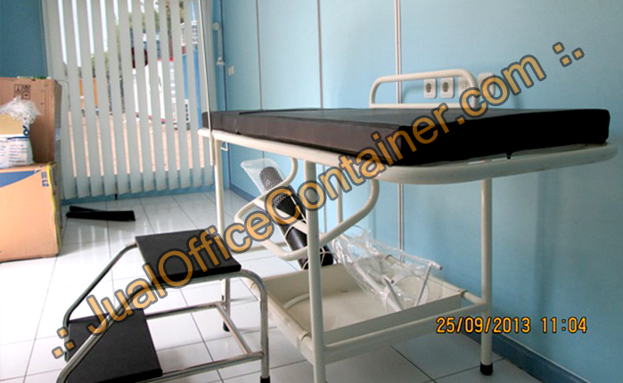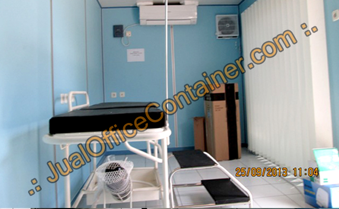Klinik Container, Kami JualOfficeContainer.com memodifikasi container kondisi 70-75% menjadi klinik container yang diperuntukan untuk tempat penangan tindakan pertama pada kecelakaan pada area proyek ataupun area pertambangan dimana klinik container menjadi solusi cepat untuk penanganan kecelakaan, kemudian klinik container terdapat tempat ranjang periksa pesien serta tabung gas untuk pasien, selanjutnya klinik container juga disediakan pendingin ruangan (AC) yang tentunya menambahkan rasa aman dan nyaman untuk pasien dan dokter yang menangani pasien.